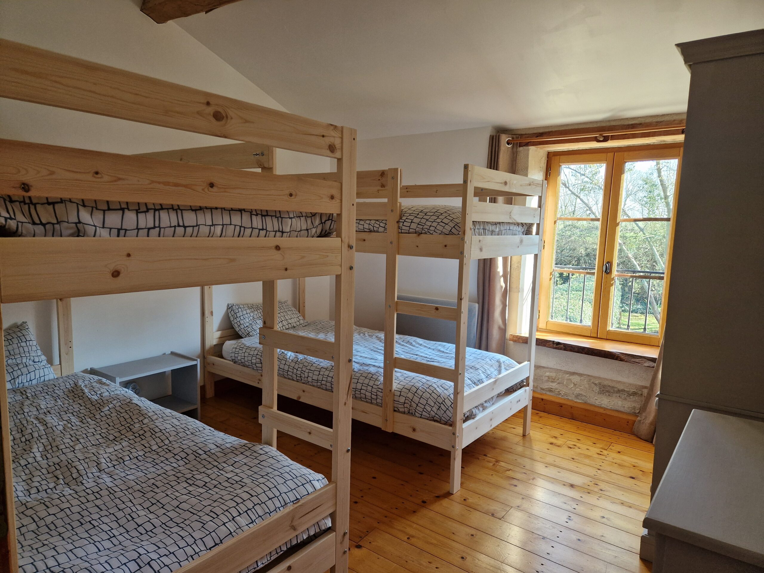Étage : 3 chambres (une avec 1 lit en 140 + douche et lavabo, une avec 1 lit de 140, une avec 2 lits superposés), salle de bain, WC.