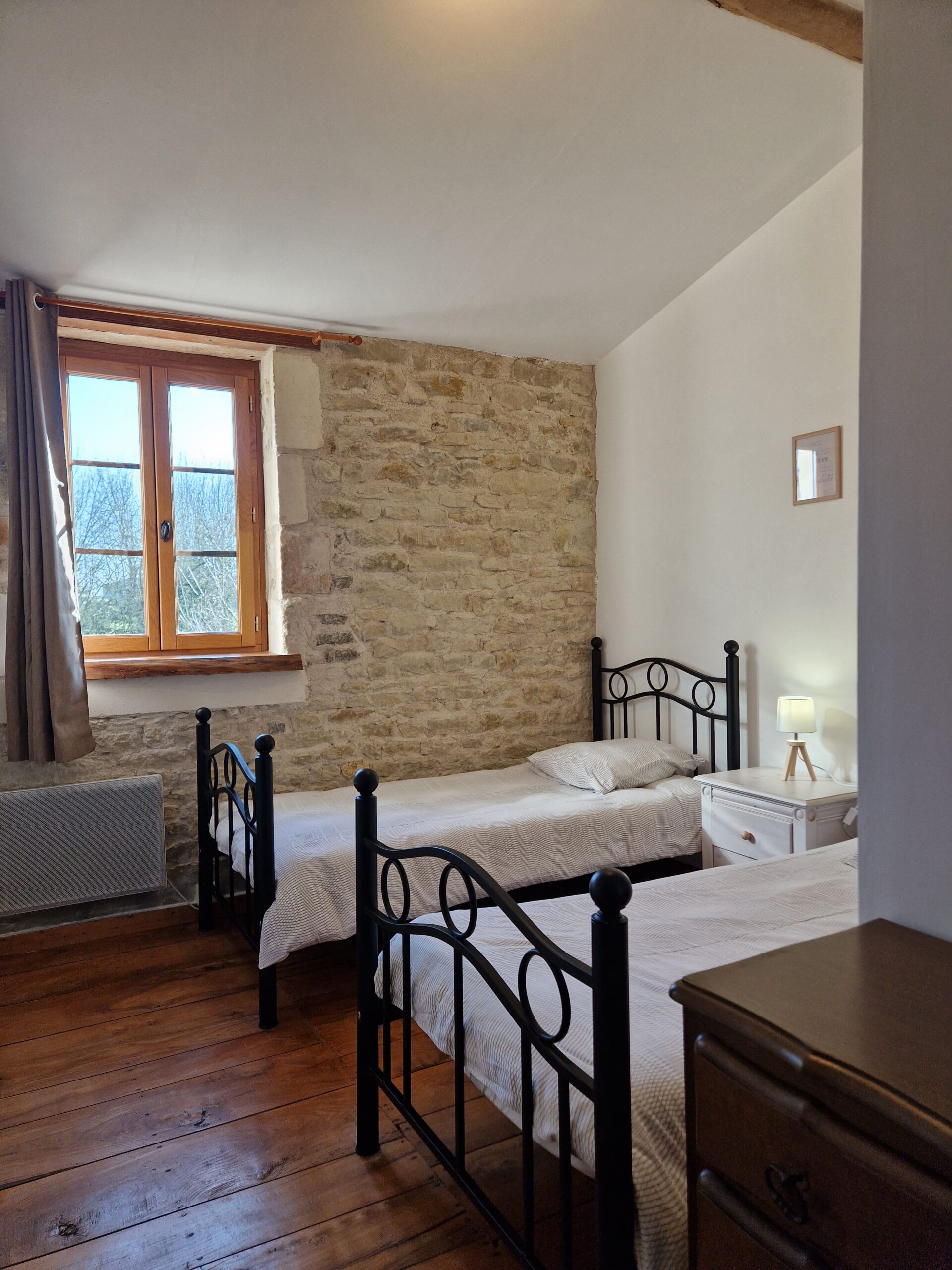 Étage : 2 chambres (une avec 1 lit en 140, une avec 2 lits de 90), salle de bain avec WC.